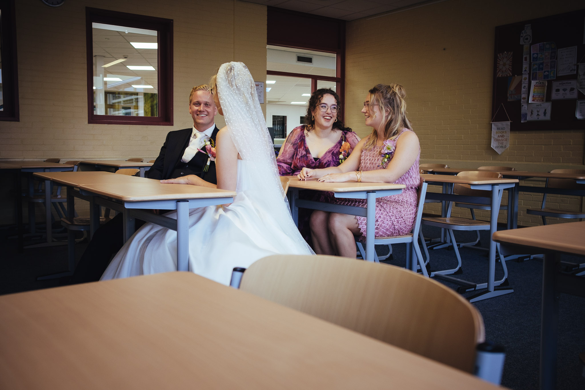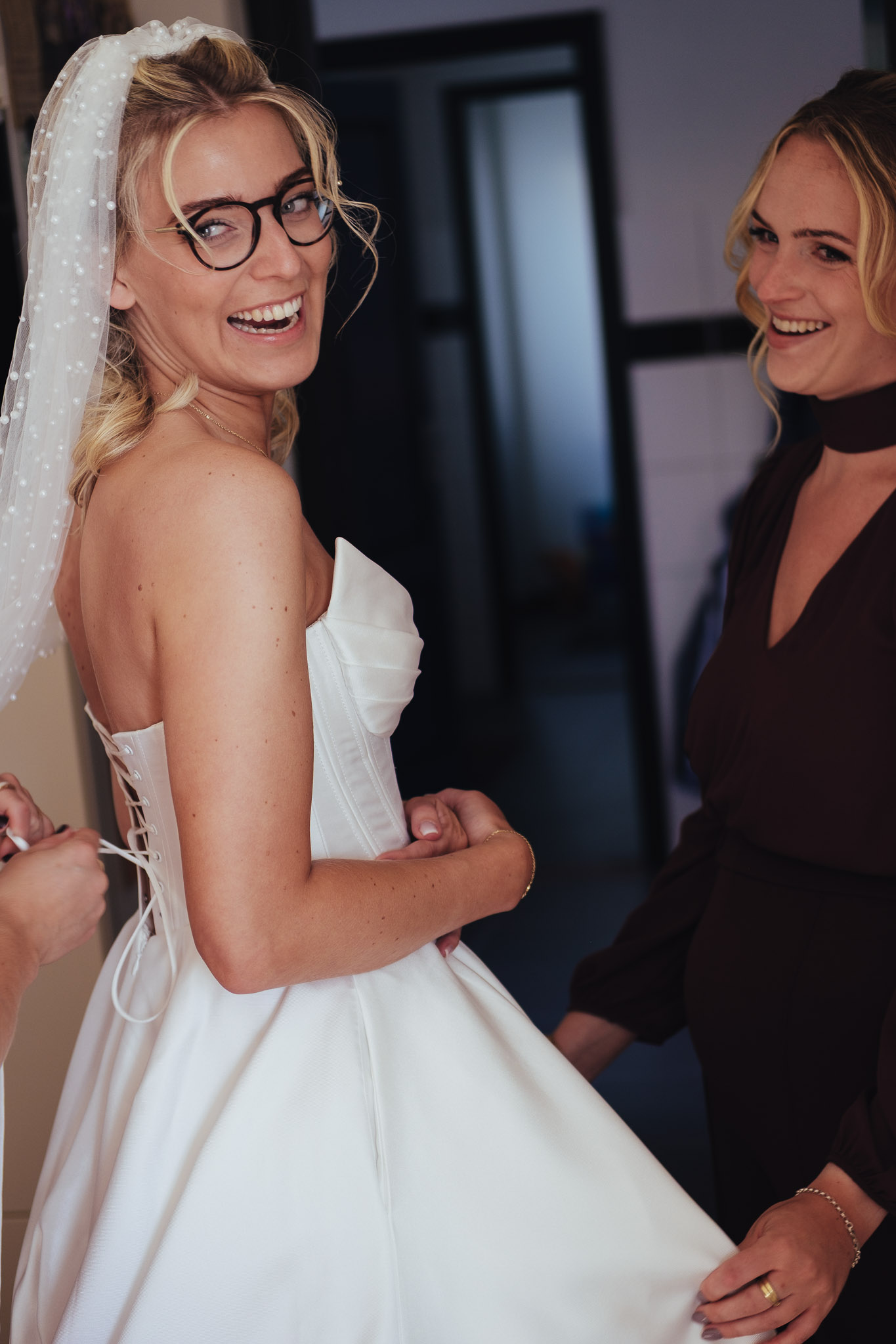 Wat een heerlijke dag gisteren… Martine en Julian zijn getrouwd! Ik begon bij het ouderlijk huis van Martine waar ze zich aan het klaarmaken was met vriendinnen die ze al vanaf de kleuterschool kent. Een gezellige chaos :). Julian was zich in hun eigen huis aan het voorbereiden. Voor de ceremonie gingen we naar de Semsstraatkerk in Stadskanaal. Na de ceremonie was er nog even tijd voor het maken van een aantal groepsfoto’s. Als locatie voor de shoot met hun samen hadden ze de plek uitgezocht waar ze elkaar hebben leren kennen, de Ubbo Emmius school. Allerlei herinneringen kwamen voorbij. Na de shoot naar Hotel Boschhuis Ter Apel, gelegen als eindpunt van een eeuwenoude beukenlaan en op een mooie plek verscholen tussen groen. Een kleine preview van deze gezellige dag: